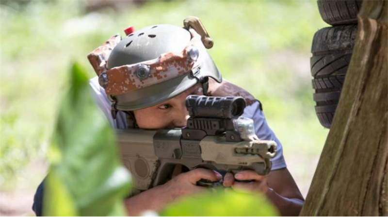 真人CS名马轩真人CS对战场地,共有水弹枪100把,激光镭射枪150把,可以同时容纳250人进行对战。